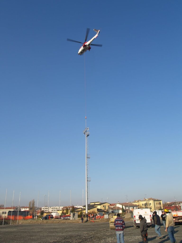 "TORRI FARO" Campo da Rugby Colorno Installazione con utilizzo di elicottero!